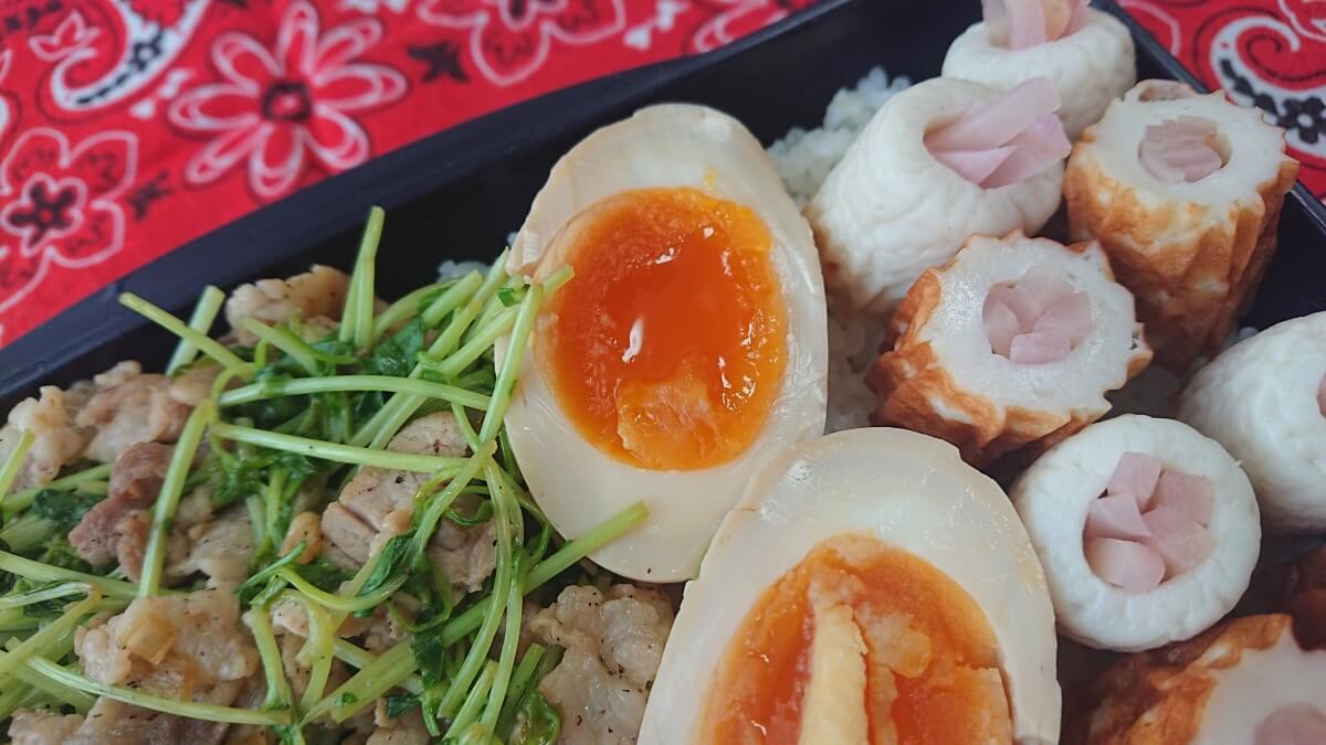 週頭に漬けた味玉の二個目。黄身がプルプルに固まってきて少し味濃いめになってて米に合います。