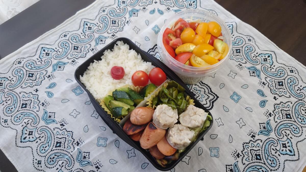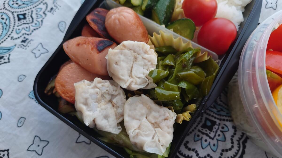 [ ごはん ]フィッシュフランクBBQテイスト弁当 2023年8月2日100gで110円のお値打ち品。カルシウムたっぷり!フィッシュフランクは大きく切って、こんがり焼き目を付けます。大量に採れているピーマンは食べやすい幅に切って、砂糖醤油で甘辛く炊きました。キュウリはシーズニングスパイス使って、山椒味にしています。冷凍シュウマイはそのまま入れる。食べるときには溶けてる。大量に採れるのはミニトマトも一緒。刻んでドレッシングあらかじめ和えておきます。 Tags: きゅうり, シュウマイ, ピーマン, フィッシュフランク, ミニトマト By イケメン弁当